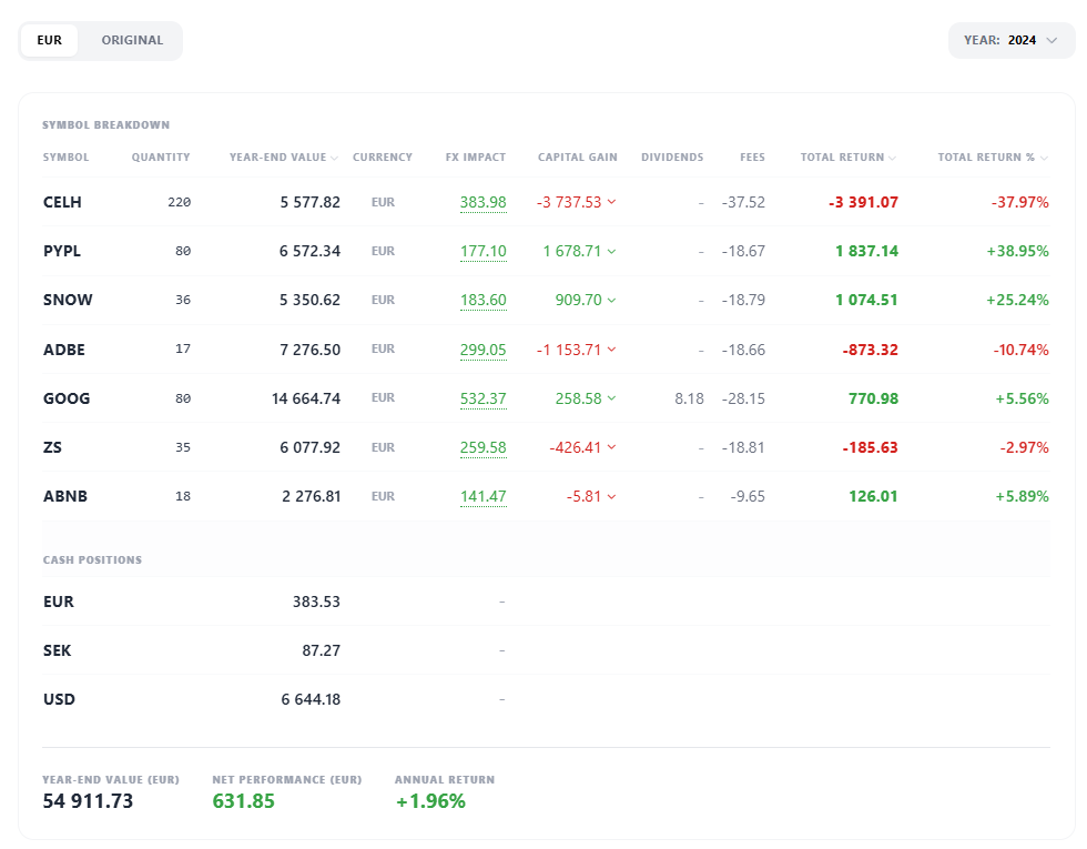 GIPS-compliant Modified Dietz calculations give you the complete picture — capital gains, dividends, fees, and real FX attribution. The same methodology used by institutional fund managers, now free for everyone.